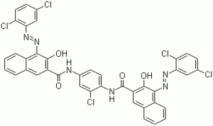 Английский псевдоним: CIPigment Red 144; PR144; Кромофтал Ред Брн; 2-Нафалинкарбоксамид, N, N '- (2-хлор-1,4-фенлен) бис [4 - [(2,5-дихлорфенил) азо] - 3-гидрокси (4E, 4'E) -N, N' - (2-хлорбензол-1,4-диил) бис {4- [2- (2,5-дихлорфенил) гидразинилиден] -3-оксо-3,4-дигидронафталин-2-карбоксамид}; N- [2-хлор-4 - [[4- (2,5-дихлорфенил) азо-3-гидрокси-нафталин-2-карбонил] амино] фенил] -4- (2,5-дихлорфенил) азо-3- гидрокси-нафталин-2-карбоновой кислоты; Большой молекулярный красный BR