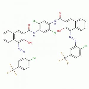 Английский псевдоним: Красный пигмент 242; PR242; Сандорин Скарлет 4RF; 2-нафталинкарбоксамид, N, N '- (2,5-дихлор-1,4-фенилен) бис- [4 - [[2-хлор-5- (трифторметил) фенил] азо] -3-гидрокси-3-гидрокси -; (4Z, 4'E) -N, N '- (2,5-дихлорбензол-1,4-диил) бис (4 - {[2-хлор-5- (трифторметил) фенил] гидразоно} -3-оксо- 3,4-дигидронафталин-2-карбоновая кислота); 4- [2-хлор-5- (трифторметил) фенил] азо-N- [2,5-дихлор-4 - [[4- [2-хлор-5- (трифторметил) фенил] азо-3-гидроксинафталин -2-карбонил] амино] фенил] -3-гидроксинафталин-2-карбоксамид; N, N '- (2,5-дихлор-1,4-фенилен) бис [4 - [[2-хлор-5- (трифторметил) фенил] азо] -3-гидроксинафталин-2-карбоксамид] CAS номер: 52238 -92-3